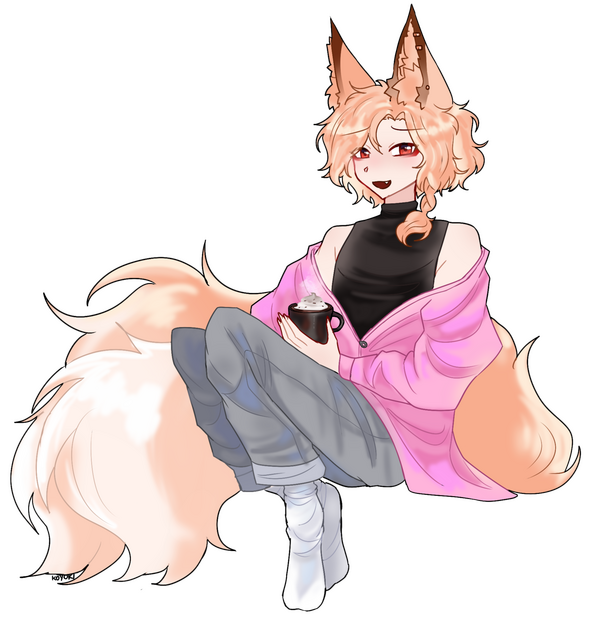 My main sona is a two tailed kitsune! She was created back in January 14th 2024! Before him my main sona was a cat.